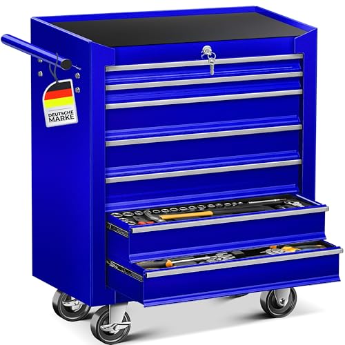 MASKO® Verkstadsvagn – 7 lådor, blå ? Låsbart. Massiv metall | verktygsvagn | professionell verkstadsvagn | rullvagn verktygsförvaring | lådor med kullager
