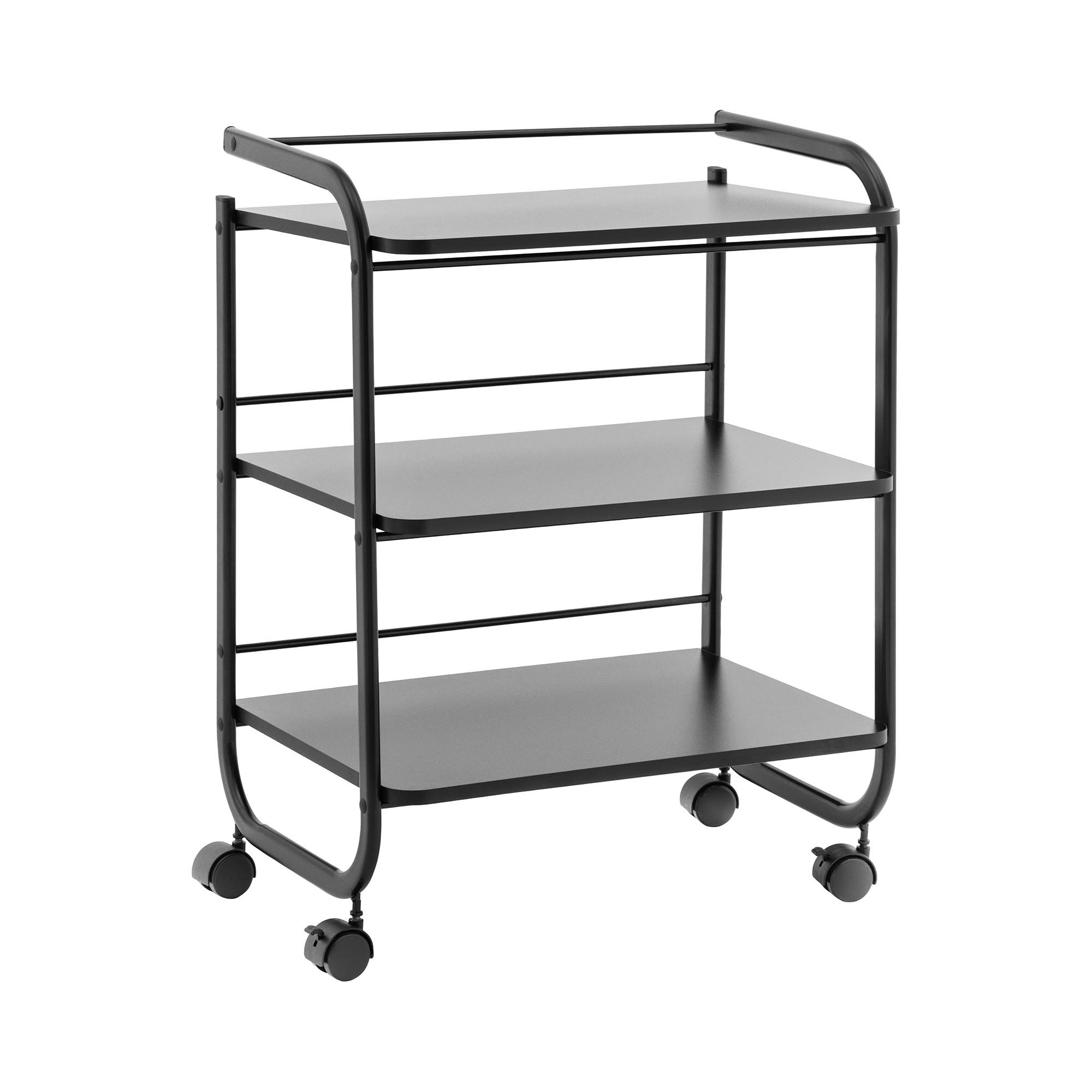 Relaxdays Rullvagn, 3 våningar, 2 bromsar, universalvagn kök, badrum, kontor, rullhylla metall, HBT 84 x 42 x 37 cm, svart 10034150_46