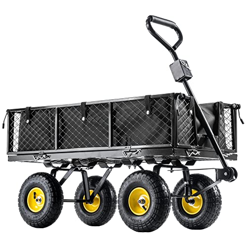 KADAX Nätträdgårdsvagn med avtagbar presenning, lastkapacitet 300 kg, rullvagn av pulverlackerat stål, handvagn med halkfritt handtag, trädgårdsvagn, transportvagn (120 L, svart)
