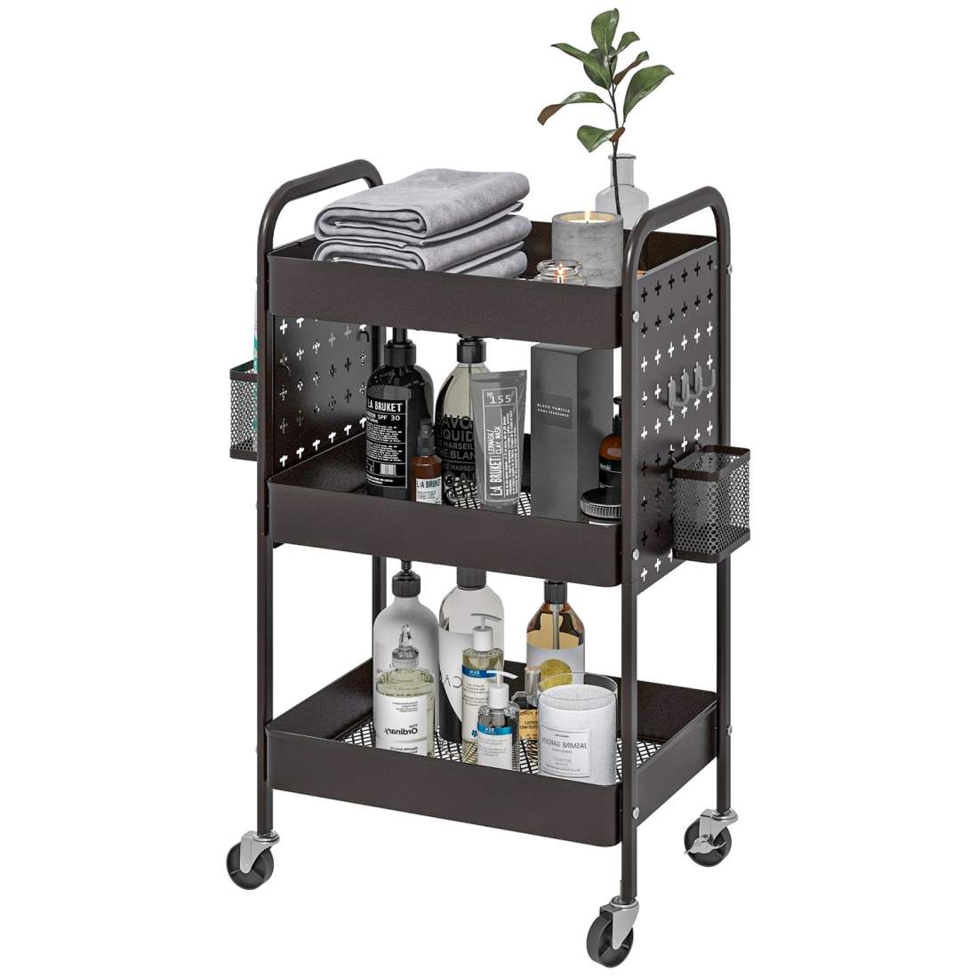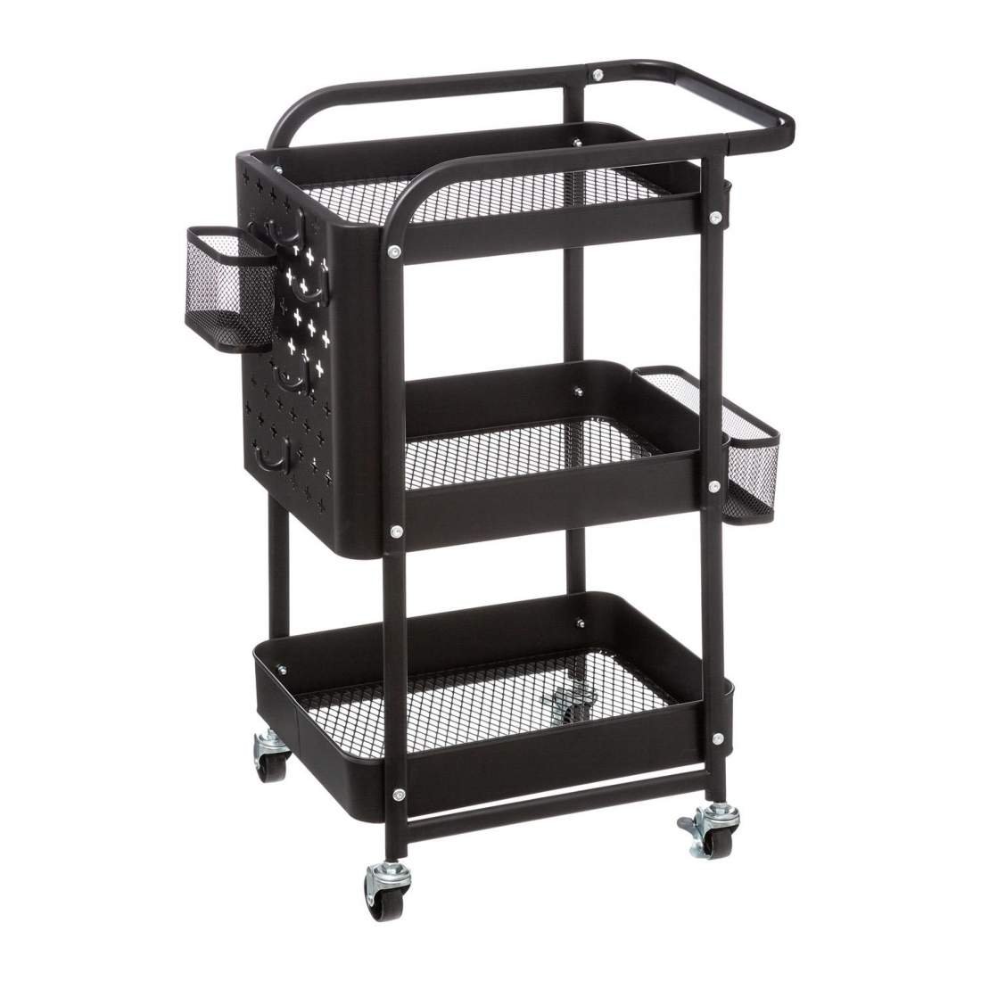 Rullvagn med 3 korghyllor – metall & plast, svart