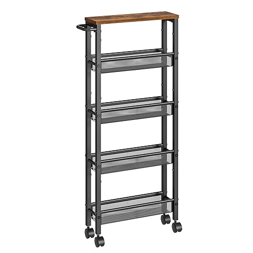 VASAGLE Rullvagn 5 nivåer, smal köksvagn, nischhylla på hjul, stål, handtag, små rum, 13 x 45,4 x 99,6 cm, kök, badrum, vardagsrum, arbetsrum, vintagebrun-svart LRC034B01