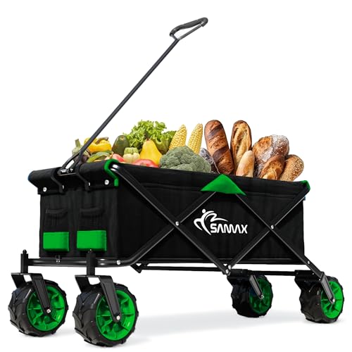 SAMAX Bollervagn, handvagn, trädgårdsvagn, strandvagn, vikbar, rullvagn, transportvagn – svart/grön