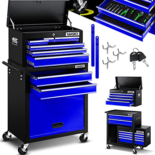 MASKO® verkstadsvagn inkl. Resväska – 9 fack svart, låsbar, massiv metall | mobil verktygsvagn utan verktyg | professionell verkstadsvagn | rullvagn för verktygsförvaring med lås