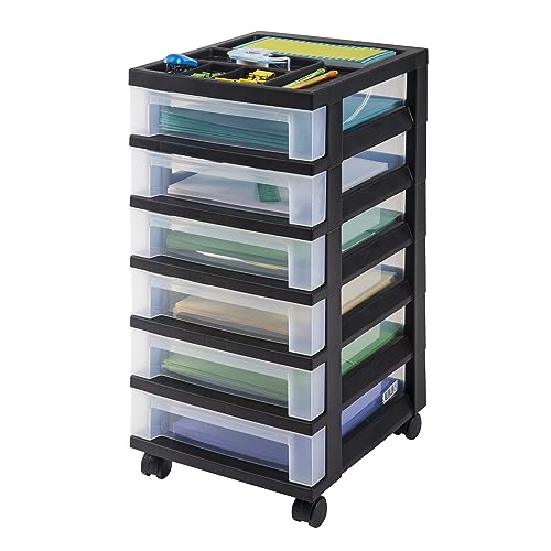 Iris Ohyama Medium 7-lådors förvaring rullvagn med organiseringstopp, svart/pärla