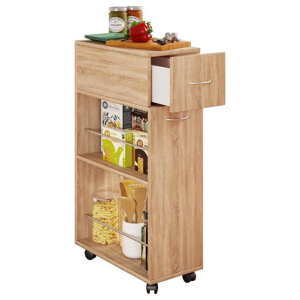 SoBuy Köksskåp Köksö på hjul Hörnskåp kök Rullvagn Serveringsvagnar Bänkskåp (FKW45-WN)