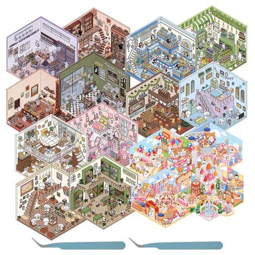 Wnqou 20 uppsättningar gör-det-själv 3D hus klistermärken samling bok, 3D-scen, miniatyrhydda simulerar scen spel, söta tecknade klistermärken för vuxna och barn, roliga rum material bok för flickor