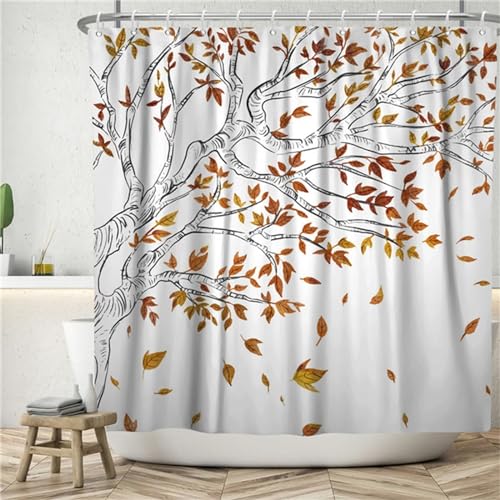 Duschgardin höst träd gardiner vattentäta duschdraperier för trädgård med 12 krokar, 180 x 200 cm (71 tum x 79 tum) 3d duschdraperi polyester snabbtorkande rostfria öljetter, rum badkar badrumsdekor