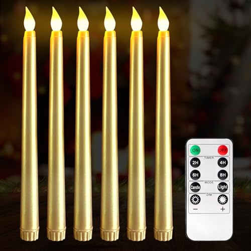 6 stycken LED-stavljus, flamlösa, LED-ljus med fjärrkontroll, timer och dimmer, batteridriven, 3D-vektljus för rum, fest, dekoration, vardagsrum, bröllopsdekoration, bordsdekoration, guld