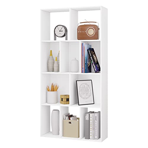 WOLTU Bokhylla Rumsavdelare Hylla Bokhylla Ståhylla Förvaringsställ Förvaringsställ med 8 fack Arkivställ för vardagsrum, barnrum och kontor, vit SK021ws
