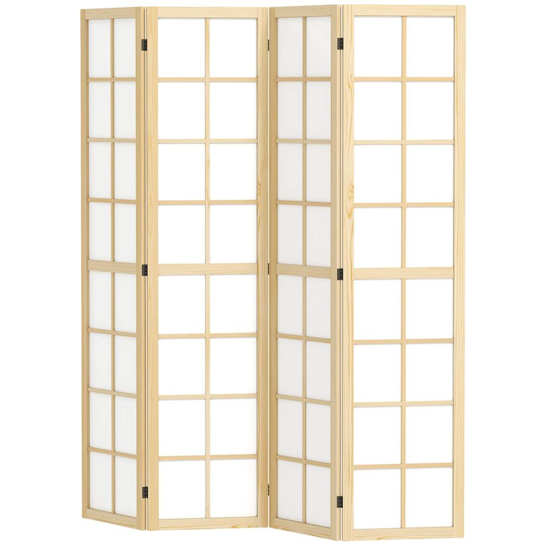 Skärm 4-delad rumsavdelare 160 x 170 cm, vikbar rumsavdelare, insynsskydd för vardagsrum, naturlig