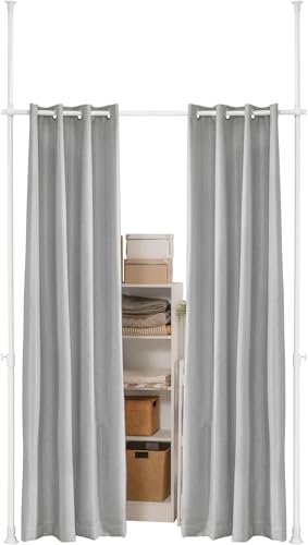 SoBuy Justerbar rumsavdelare - mörkläggningsgardiner med metallstänger för sovrum, vardagsrum ljusgrå KLS12-HG