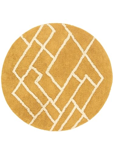 RugVista RugVista Breeze, Badrumsmatta, Moderna mattor, Ø 90 cm, Rund, Kort lugg, Maskintvätt, Gul