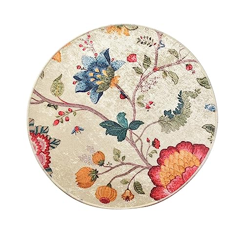 Lahome Bohemisk blommig medaljong rund matta – 1,2 m varm rosa mjuk rund matta sovrum köksmatta, turkisk tvättbar inomhusgolv accent badrumsmatta för barnkammare vardagsrum hem kontor hall