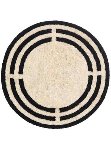 RugVista Chateau, Badrumsmatta, Moderna mattor, Ø 90 cm, Rund, Medellång lugg, Maskintvätt, Natural/Svart