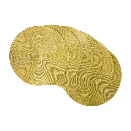DII Rund flätad och vävd, inomhus/utomhus bordstablett eller laddare, set med 6, metalliskt guld