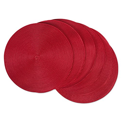 DII Klassisk vävd rund bordstablett för inomhus/utomhus bordsinställningar, daglig användning, familjemiddagar eller helgdagar, 38 cm diameter, tangoröd, 6 st