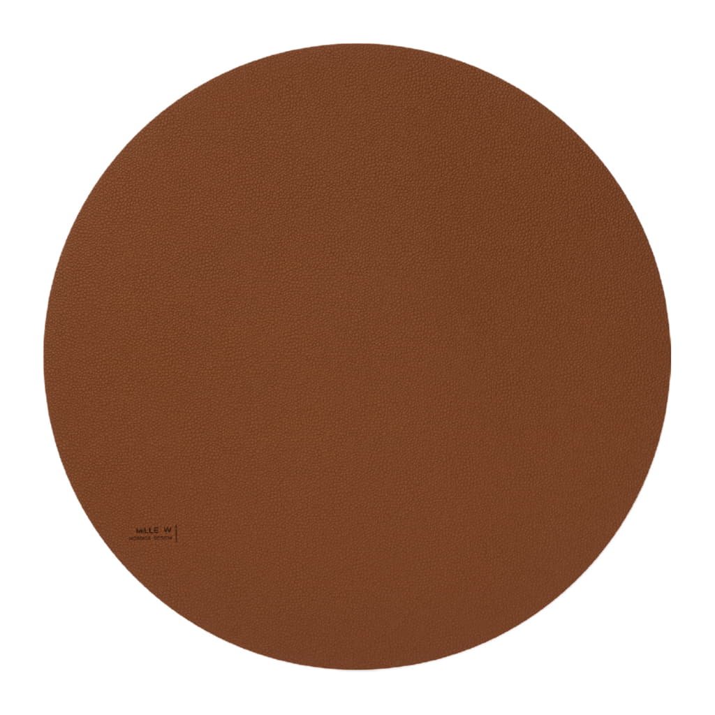 Nordan Home - Bordstablett i läder rund 35 cm ljusbrun