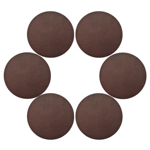 Rund bordstablett uppsättning med 6 för matbord elegant mörkbrun bordstablett värmebeständig köksbord matta läder textur för fest heminredning tvättbar