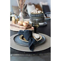 DII Rund fransad vävd bordstablett, används för vardagliga familjemiddagar eller speciella tillfällen, 37,5 cm, nautisk blå 6 styck