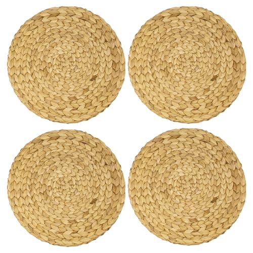 HMF bordsset rund flätad av vattenhyacint, bordstablett tvättbar | set om 4 | 35 cm