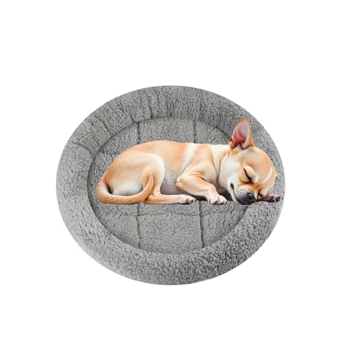 Njut av plysch kattbädd matta diameter 40 cm rund dyna med kudde runt för små medelstora hundar katter förlitar sig/lockar sömn varm kattkudde för lådor, antiglid botten, medium