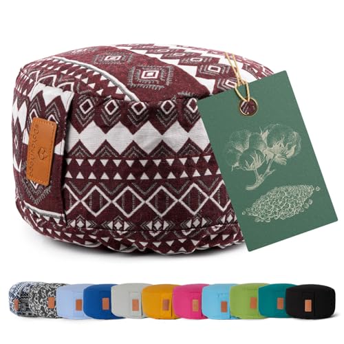 #DoYourYoga rund yoga dyna – tvättbart överdrag, ekologiskt boveteskal (KBA) fyllning, 30 x 15 cm, yogakudde för Yin yoga och meditation – stil (2)