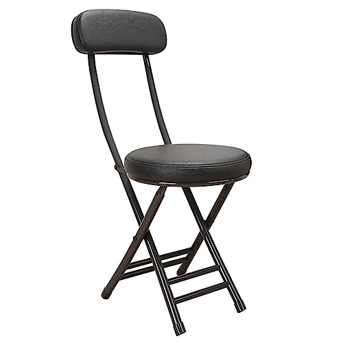 MMOU Klappstol Inomhus med Ryggstöd, Rund Tjock Dyna och Metallfäste - Bekväm och Mångsidig Stol för Alla Tillfällen (Color : Black)
