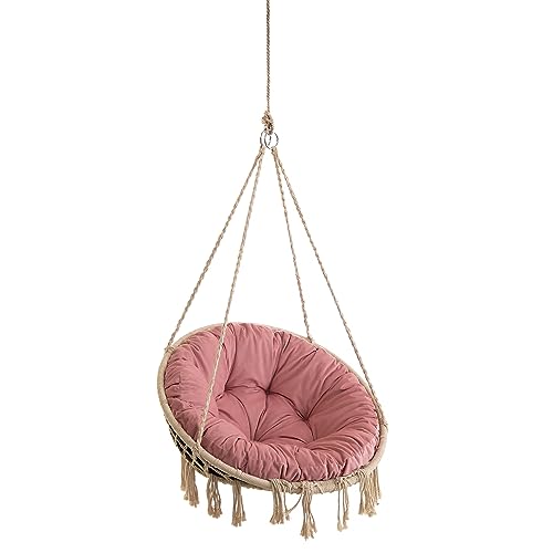 PillowPrim Sammetskudde för hängfåtölj, sittdyna för stol, hängkorg fåtölj, inomhuskudde, tvättbar dyna, rund, swing, gungkudde, rosa, 92 cm