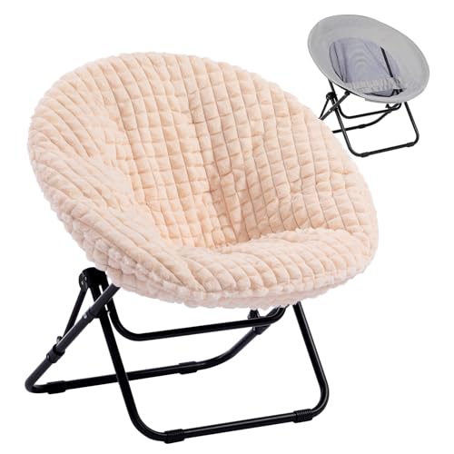 HollyHOME Fällbar tefat stol månstol hopfällbar fåtölj rund läsning stolar bärbar bekväm fåtölj för vardagsrum och sovrum, plysch beige