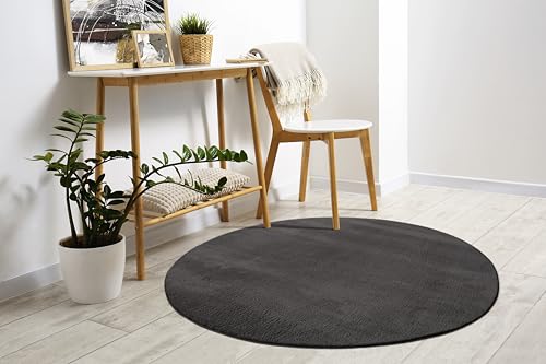 Mia´s Mattor komfort modern fluffig kort lugg matta, halkfri undersida, tvättbar upp till 30 grader, supermjuk pälsoptik, antracit, 160 cm rund