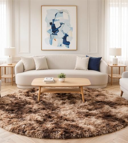 VOFUSHON Matta rund hög lugg matta vardagsrumsmatta lång lugg mattor för vardagsrum fluffig lurvig sovrumsmatta utomhus matta ( 120 cm rund, brun)