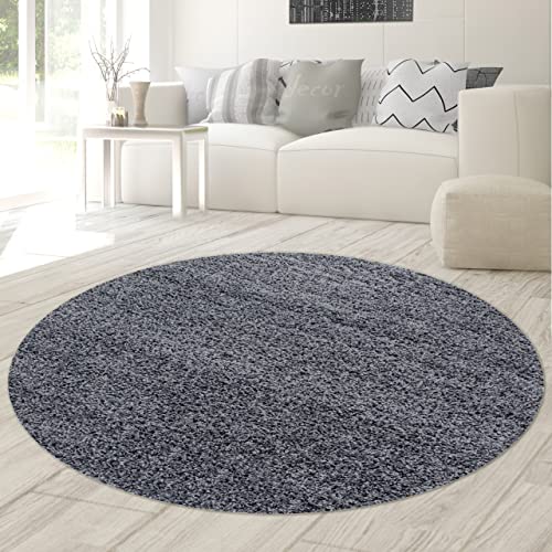 Paco Home Rund Matta Vardagsrum Stor Matta Modern Fluffig Tvättbar Enfärgad, Storlek:160 cm Runda, Färg:Grå