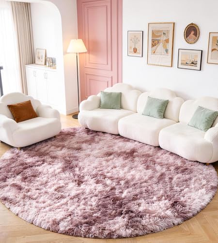 MARATIP Plyschmatta, fluffig rund matta, modern, för barn och flickor, mjuk matta för sovrum/vardagsrum/barnrum (lila/rosa, rund med 120 cm i diameter)