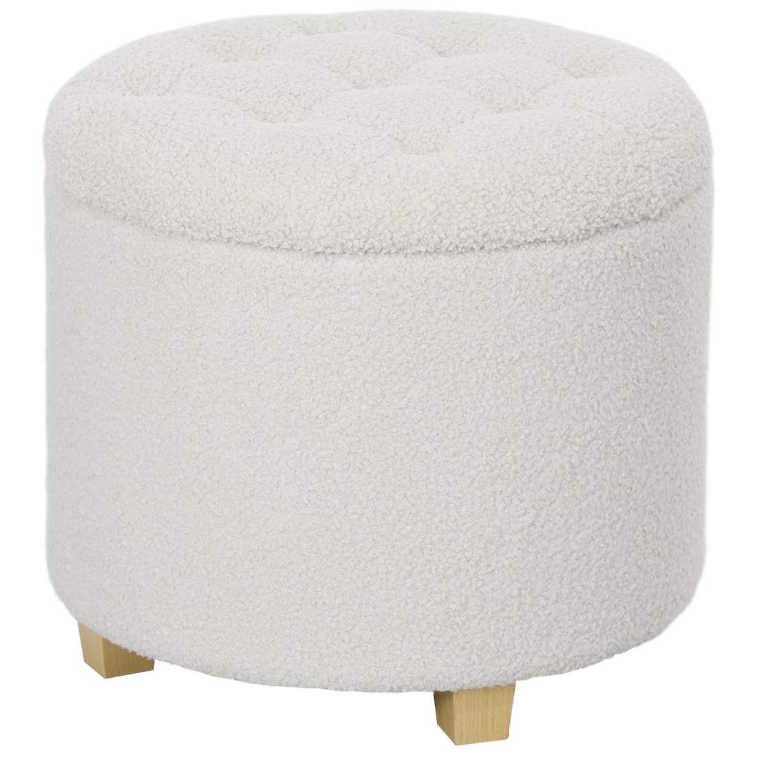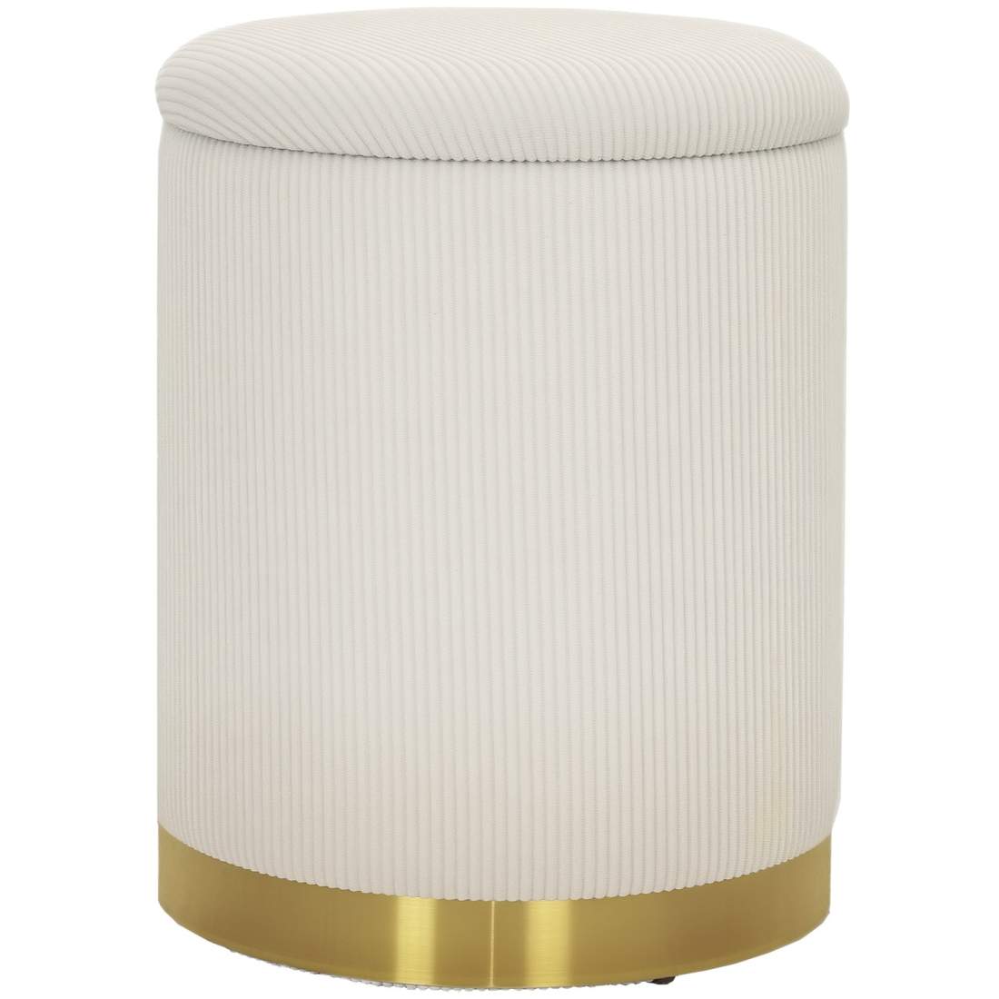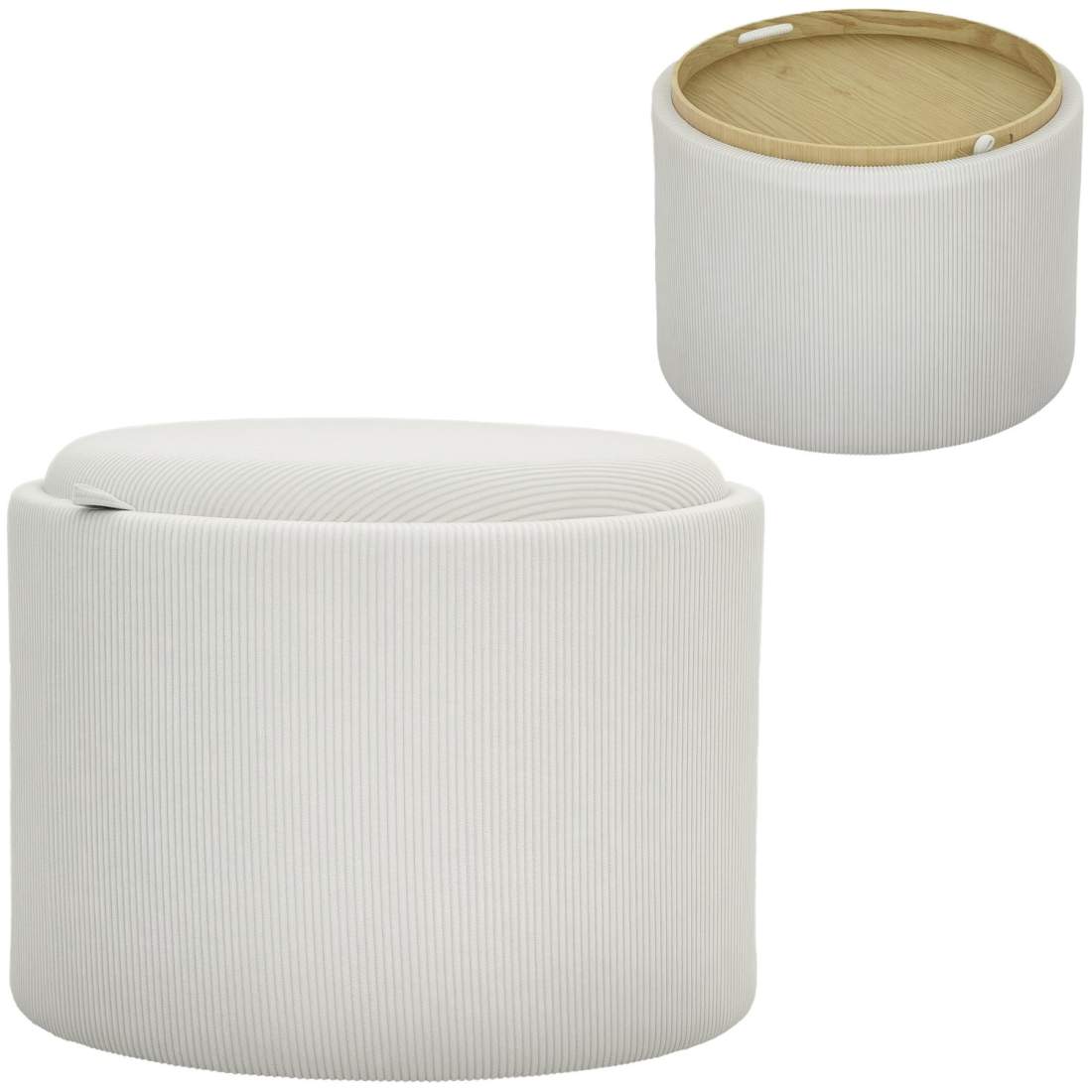 Rund pall med förvaringsutrymme & Avtagbart lock rymmer upp till 150 kg Beige fotpall