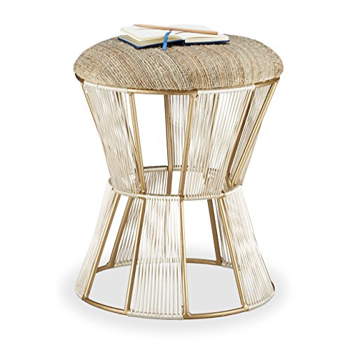 Amazon Basics Vadderad och tuftad pall, rund, med förvaringsutrymme, fotpall, 43 cm hög, jute-beige