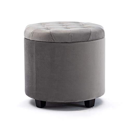 HNNHOME 45 cm rund ny sammet vadderad sits ottoman förvaringspalllåda, fotpall puffer stol med lock (grå, sammet)