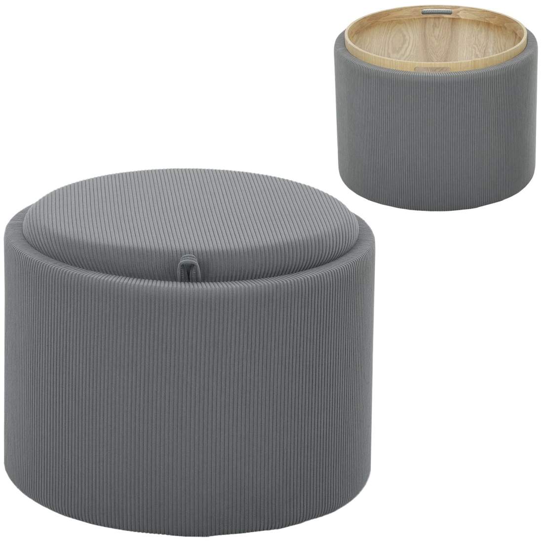 Rund pall med förvaringsutrymme & Avtagbart lock rymmer upp till 150 kg Grå fotpall