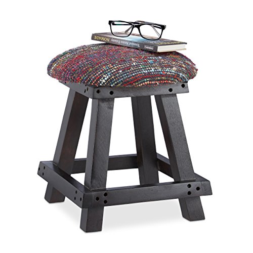 Relaxdays rund pall, 4 bent stoppad fotpall, handgjord fotstöd, H x B x D: 40 x 33 cm, färgglad