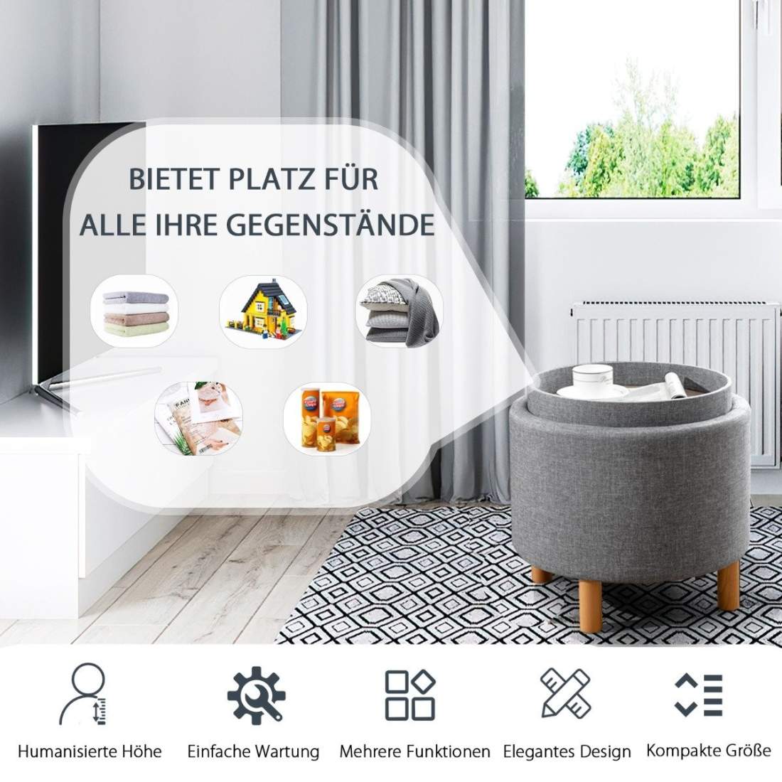 WOLTU Pall med förvaringsutrymme, sittpall vadderad rund, soffbord med massiva träben, fotpall med lock, linneöverdrag, Ø 39 x 33 cm, mörkgrå
