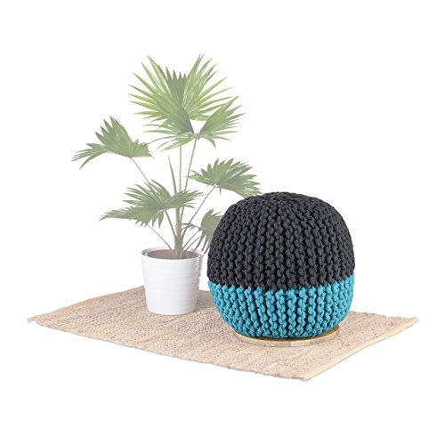 Native Home Pouf, 2 i 1, sidobord och fotpall, rund, stickad 40 x 40 x 40 cm Blue-grey