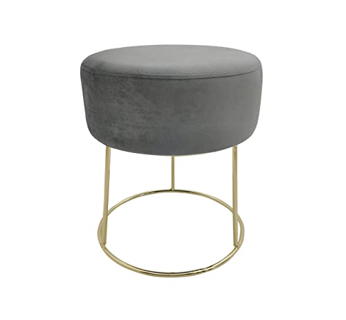 ECHTWERK Rund sittpall Marilyn, stoppad pall av sammetstyg, sminkpall med metallben i guld, pall lämplig för sovrum och vardagsrum, fotpall kan belastas upp till 150 kg, grå