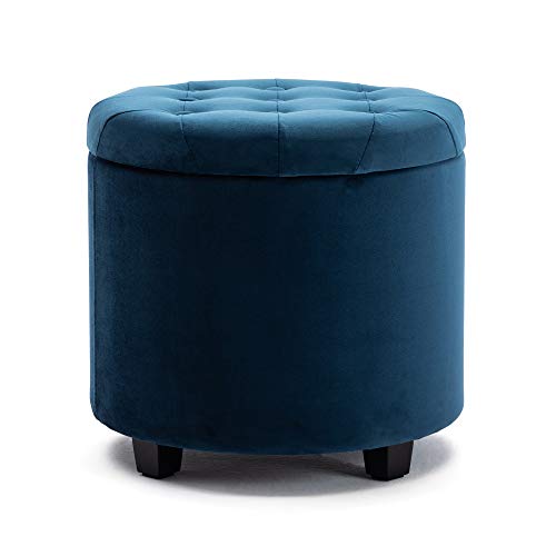 HNNHOME 45 cm rund ny sammet vadderad sits ottoman förvaringspalllåda, fotpall puffer stol med lock (marinblå, sammet)