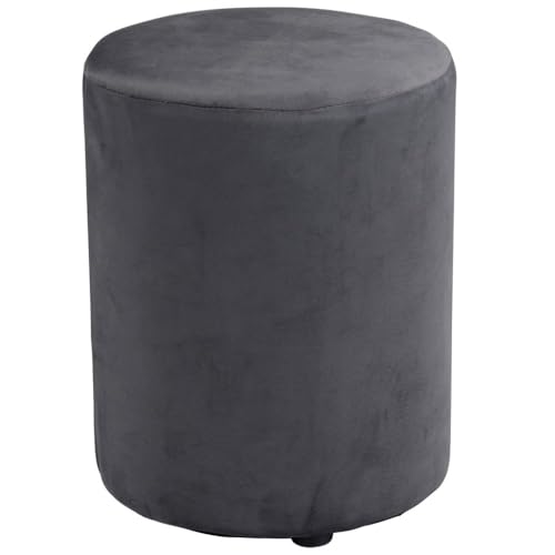 Arti Casa Pouf rund sammet – sammetspall 28 x 36 cm – fotpall eller fåtölj sovrum – möbler för sminkbord – kompakt stol liten – pall sminkbord – grå
