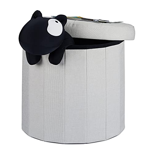 Relaxdays Sittpall med förvaringsstorlek L, rund fotpall med lock, vikbar klädsel, HBT: 43 x 45 x 45 cm, gräddvit