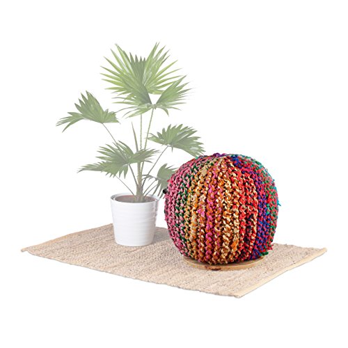 Native Home Pouf, 2 i 1, sidobord och fotpall, rund, stickad, röd, 40 x 40 x 40 cm