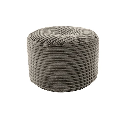 Loft 25 bönpåse rund fotpall | jumborep 'The Rhino' | spelstol inomhus vardagsrum | ergonomisk design för timmar av avkoppling | benstöd puff (grå)