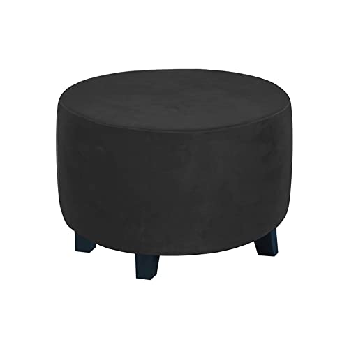 YOPOIY Rund ottomanöverdrag sammet ottoman överdrag stretch halkskydd fotpall överdrag tvättbar pall möbelskydd för vardagsrum – svart – small