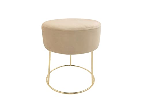 ECHTWERK Rund sittpall Marilyn, stoppad pall av sammetstyg, sminkpall med metallben i guld, pall lämplig för sovrum och vardagsrum, fotpall kan belastas upp till 150 kg, gräddvit