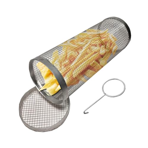 CENPEK Rullande BBQ Grillkorg, Bärbar BBQ Grönsaksgrillkorg Utomhus BBQ Tillbehör BBQ Grill Rund grillställ för grönsaker