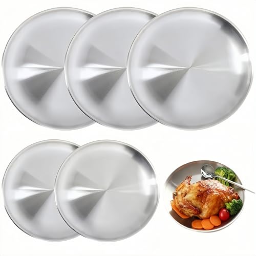 MUNGHOK 5-pack 30 cm rostfritt stål porslin, rund bricka, metalltallrik serveringstallrik rund silver fat mattallrik för camping, grill, picknick